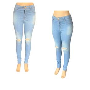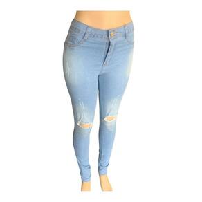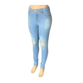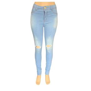 Calça Jeans feminina, com detalhes destroyed Azul Claro. Fechamento com zíper e botão. Bolsos dianteiros invísivel e traseiros usáveis. Composição de 75% Algodão 22% Poliéster e 2,5% Elastano.