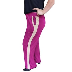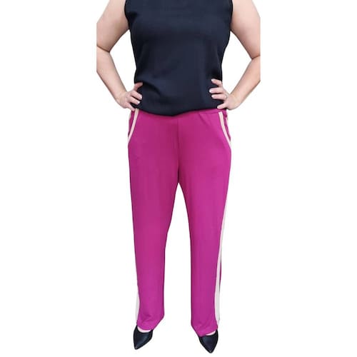 Conforto com estilo é o que define a Calça Feminina de Malha Pink com Listra Lateral.