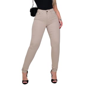 Calça Feminina Skinny Bege Cintura alta - Bege - 46