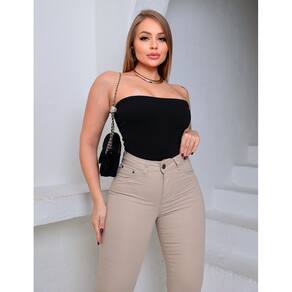 Calça Feminina Skinny Bege Cintura alta - Bege - 48