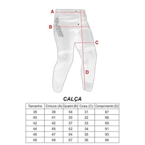 Especificação técnica Calça: