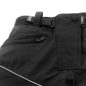 O grande diferencial da calça são seus forros internos removíveis que ajudam na lavagem, ela conta com um sistema de ajustes para que fique sempre adequada ao corpo do piloto, possui também placas de reforço para proteção durante a pilotagem, ela conta com fitas refletivas para facilitar a visualização do piloto ao dirigir durante a noite