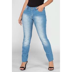 Calça feminina jeans lycra, modelagem que se ajusta ao corpo.