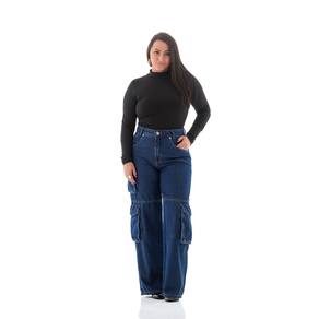 Calça Jeans Feminina Arauto Wide Cargo - Azul médio - 44