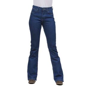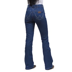 Calça jeans feminina na qualidade Wrangler modelo Flare, fabricada em tecido costurado 72% Algodão, 26% Poliéster e 2% Elastano na cor Azul, possui 3 bolsos na frente e 2 atrás em modelo tradicional, rebites de metal e botão personalizado.