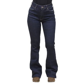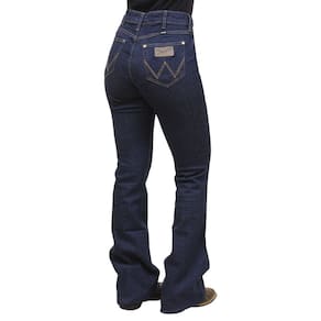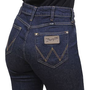 Calça Jeans feminina da marca Wrangler modelo Flare, fabricada em tecido jeans de alta qualidade na cor Azul Escuro. Possui 5 passadores, 3 bolsos frontais e 2 bolsos posteriores, perna ajustada que vai se alongando perfeita para se usar com botas e etiqueta da marca costurada no bolso posterior.