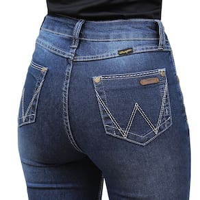 A Calça Jeans Feminina modelo Boot Cut da marca Wrangler é a escolha perfeita para mulheres que procuram um visual moderno e ao mesmo tempo clássico. Esta calça é feita de um tecido de alta qualidade e durável, que combina com qualquer estilo e ocasião. O modelo boot cut é caracterizado por sua silhueta justa na parte superior da calça e levemente alargada a partir do joelho, criando um formato que se ajusta perfeitamente às botas, além de proporcionar um visual alongado e elegante. A cintura média da calça proporciona conforto e um caimento natural, enquanto os bolsos traseiros com bordados em linha contrastante adicionam um toque de estilo único. Além disso, o tom azul escuro clássico do jeans é perfeito para combinar com uma variedade de cores e estilos.
