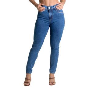 Calça feminina jeans heart. Modelagem coração, desenhada para valorizar o seu bumbum. Cintura média Fechamento com botão metálico e zíper Bolsos frontais falsos e bolsos traseiros funcionais Barra simples Modelagem: Heart Tecido: Jeans Tipo de lavagem: Azul Cor: Azul Médio