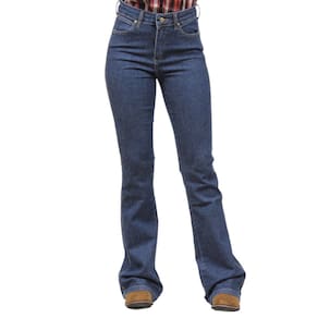 Uma Calça Jeans Feminina na qualidade Wrangler modelo Flare, fabricada em tecido jeans 98% Algodão e 2% Elastano de alta qualidade na cor Azul, possui 3 bolsos na frente e 2 atrás em modelo tradicional, rebites de metal e botão personalizado.