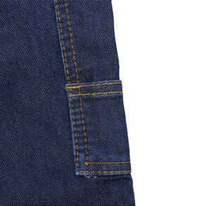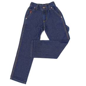 Calça Infantil Masculina da marca Dock's com mais qualidade que nunca! Este é o modelo Infantil Carpinteira, perfeita para as diversas situações que seu pequeno irá passar! Esta peça é fabricada em tecido jeans 60% Algodão e 40% Poliéster na cor Azul, possui 3 bolsos na frente, 1 na lateral e 2 atrás em modelo tradicional com costuras, alça para portar utensilhos, elastico na cintura moldando conforme o corpo o da criança, rebites de metal e botão personalizado, realçando a qualidade do produto. Uma calça que é super resistente e que pode se confiar.