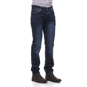 Calça jeans masculina Levi's modelo Slim fabricada em tecido 99% Algodão e 1% Elastano na cor Azul, possui 3 bolsos na frente e 2 atrás em modelo tradicional, rebites de metal e botão personalizado.