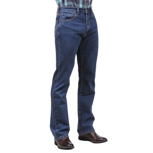 Calça Jeans Masculina na qualidade Levi's modelo 517 Bootcut, perfeita para usar com botas, esta é fabricada em tecido 100% Algodão de alta qualidade na cor Azul, possui 3 bolsos na frente e 2 atrás em modelo tradicional, rebites de metal e botão personalizado.