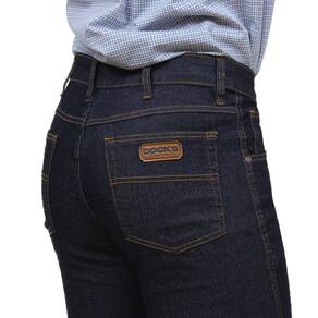 Calça Jeans modelo Masculino autêntico Fit da marca Dock's, perfeita para as diversas situações da fazenda e montaria, claro né, um modelo clássico de calça. Esta peça é fabricada em tecido jeans 84% Algodão, 14% Poliéster e 2% Elastano na cor Azul Escuro de alta qualidade, possui 3 bolsos na frente e 2 atrás em modelo tradicional com costuras, rebites de metal e botão personalizado, realçando a qualidade do produto. Uma calça que é super resistente e que pode se confiar.