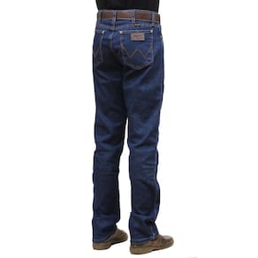 Calça Jeans masculina na qualidade Wrangler modelo Cowboy Cut, uma peça própria para os Cowboys, por ter cintura e pernas um pouco mais largas, assim obtendo um caimento mais reto e harmonico, nesta calça também se pode usar botas de cano longo, tipico dos cavaleiros. Fabricada em tecido Advanced Confort 75% Algodão, 23% Poliéster e 2% Elastano na cor Azul Escuro. Possui 7 passadores, 3 bolsos frontais e 2 bolsos posteriores tradicionais e etiqueta da marca costurada no bolso esquerdo traseiro.