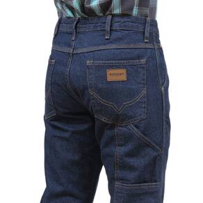 Calça Jeans Masculina na qualidade Ranger's modelo Carpinteira, fabricada em tecido feito de Algodão na cor Azul, possui 3 bolsos na frente e 2 atrás em modelo tradicional e 2 lateral, rebites de metal, alça lateral para utensilhos e botão personalizado.