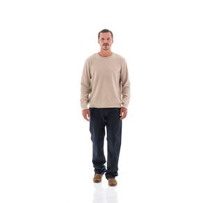 A calça clássica apresenta uma modelagem conservadora, com ganchos intermediários e pernas retas, sendo ideal para quem prefere peças mais soltas, especialmente pessoas com pernas mais grossas. Em lavagens tradicionais e escuras, essa peça se destaca pela versatilidade, permitindo combinações com sapatos sociais ou sapatênis, criando um visual elegante e sofisticado, perfeito para diversas ocasiões.