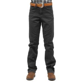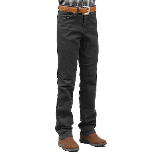 Uma Calça jeans Masculina da marca Wrangler modelo Cowboy Cut, perfeita para os cowboys que precisam de uma calça robusta para a vida no campo ou para o dia a dia da cidade. Esta fabricada em tecido combinado de Algodão e Elastano de alta qualidade na cor Cinza bastante discreto, possui três bolsos na frente e 2 atrás em modelo tradicional, rebites de metal e botão personalizado.