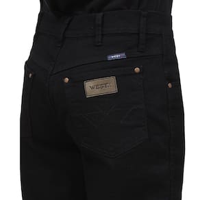 Uma Calça Jeans Masculina da marca West X modelo Cowboy Cut, perfeita para os cowboys que precisam de uma calça confortável e robusta para a vida no campo ou para o dia a dia da cidade. Esta fabricada em tecido jeans de alta qualidade, possui três bolsos na frente e 2 atrás em modelo tradicional, rebites de metal e botão personalizado com detalhes encravados.