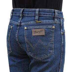 Uma Calça jeans Masculina da marca Wrangler modelo Cowboy Cut, perfeita para os cowboys que precisam de uma calça robusta para a vida no campo ou para o dia a dia da cidade. Esta fabricada em tecido combinado de Algodão, Poliéster e Elastano de alta qualidade na cor Azul, possui três bolsos na frente e 2 atrás em modelo tradicional, rebites de metal e botão personalizado.