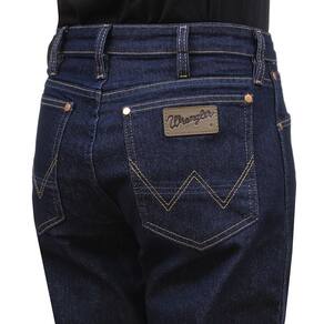 Uma Calça jeans Masculina da marca Wrangler modelo Cowboy Cut, perfeita para os cowboys que precisam de uma calça robusta para a vida no campo ou para o dia a dia da cidade. Esta fabricada em tecido combinado de Algodão, Poliéster e Elastano de alta qualidade na cor Azul Escuro bastante discreto, possui três bolsos na frente e 2 atrás em modelo tradicional, rebites de metal e botão personalizado.