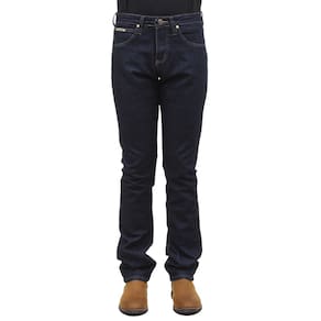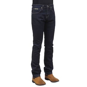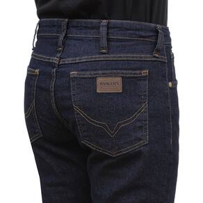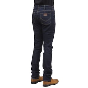 Uma Calça jeans Masculina da marca Ranger's modelo Cowboy Straight, perfeita para os cowboys que precisam de uma calça robusta e ao mesmo tempo confortável para a vida no campo ou para o dia a dia da cidade. Esta fabricada em tecido combinado de Algodão, Poliéster e Elastano de alta qualidade na cor Azul Escuro bastante discreto, possui três bolsos na frente e 2 atrás em modelo tradicional, rebites de metal e botão personalizado.