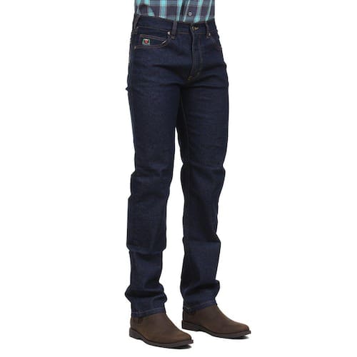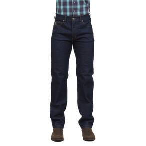 Calça jeans masculina na qualidade Os Vaqueiros, fabricada em tecido 65% Algodão 33% Poliéster 2% Elastano na cor Azul Escuro, possui 3 bolsos na frente e 2 atrás em modelo tradicional, rebites de metal e botão personalizado.