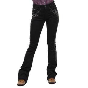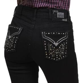 Uma Calça Jeans da marca Tassa feita da melhor qualidade modelo Boot Cut, ou seja mais justa nas pernas e cintura, mas sendo mais larga na boca, assim possibilitando o calce de botas de cano alto, esta fabricada em tecido 98% Algodão e 2% Elastano na cor Preta para maior conforto durante o uso, possui 3 bolsos na frente e 2 atrás em modelo tradicional e todos com bordados personalizados, também detalhes de pedrinhas strass por toda a calça e botão personalizado. Podendo ser usada nas suas montarias do dia a dia, fique sabendo que todos irão se apaixonar!