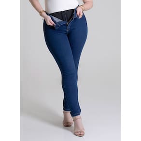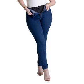 Calça super lipo confeccionada em jeans. A modelagem possui uma cinta proporcionando ajuste perfeito para o seu corpo Cintura alta Fechamento com botão e zíper Bolsos frontais falsos e bolsos traseiros funcionais Barra acabamento simples Modelagem: Super lipo Tecido: Jeans Tipo de lavagem: Azul Cor: Azul