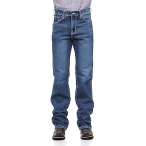 Calça masculina King Farm modelo Grant fabricada em tecido 100% Algodão na cor Azul, possui 3 bolsos na frente e 2 atrás em modelo tradicional, costuras reforçadas, rebites de metal e botão personalizado.