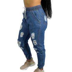 Calça Jogger Feminina Cintura Alta Divine Jeans Verão C35 - Azul Petróleo - P