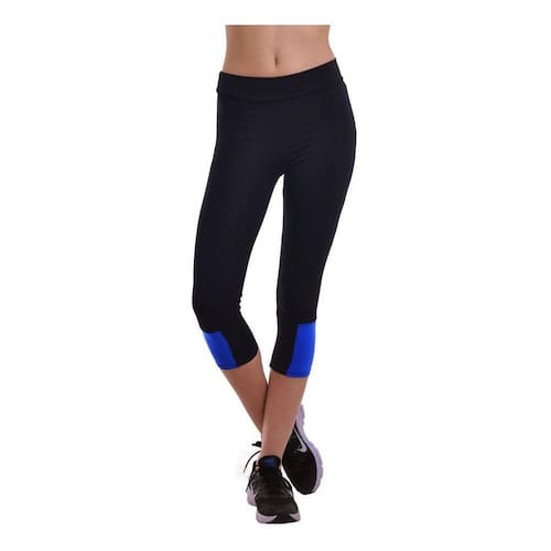 Calça Legging Capri Fitness em Power Suplex Detalhe Azul - Preto - G