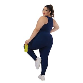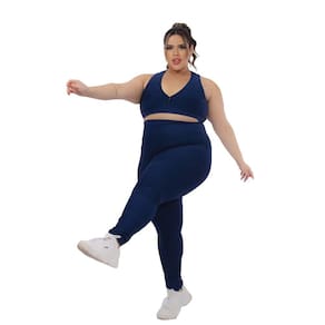 Calça Legging Feminina Plus Size G1 G2 G3 G4 Suplex Costura Reforçada Donna Martins - Azul Marinho - G3