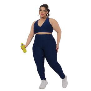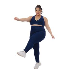 Calça Legging Feminina Plus Size G1 G2 G3 G4 Suplex Costura Reforçada Donna Martins - Azul Marinho - G4