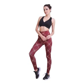 Calça Legging Fitness Cintura Alta Power Suplex Xadrez - Marrom - P