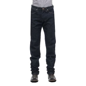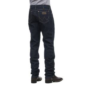 Uma Calça Jeans Masculina da marca Wrangler modelo Cowboy Cut, perfeita para os cowboys que precisam de uma calça robusta para a vida no campo ou para o dia a dia da cidade. Esta fabricada em tecido combinado de Algodão, Poliéster e Elastano de alta qualidade na cor Azul, possui três bolsos na frente e 2 atrás em modelo tradicional, rebites de metal e botão personalizado.