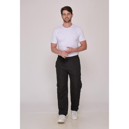 Calça em nylon com bolsos frontais, laterais e traseiros.