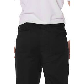 Calça com elástico na metade da cintura (cós meio elástico), permite um maior conforto.