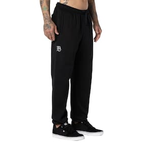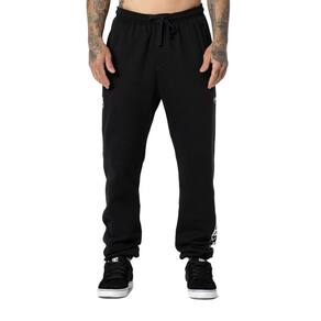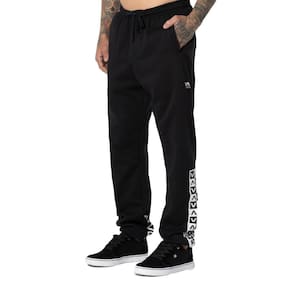 Calça de moletom coelção Barron Mamiya, cordão de ajuste no cós, vista falsa, com bolsos na frente e um bolso traseiro, estampas perna frente e costas, bordado frente e etiquetas personalizadas.
