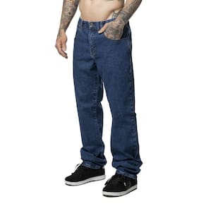 Calça RVCA denim five pockets, modelagem straight que é um pouco mais larga que a slim fit, lavanderia amaciada blue vintage, estampa interna no forro do bolso, bordado logo RVCA na lateral e etiquetas personalizadas.