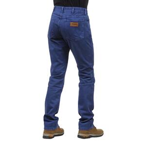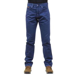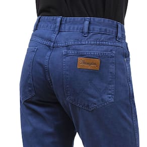 Calça masculina Wrangler modelo Regular, fabricada em tecido 100% Algodão na cor Azul, possui 3 bolsos frontais e 2 traseiros em modelo tradicional, etiqueta da marca costurada no bolso, rebites de metal e botão personalizado.