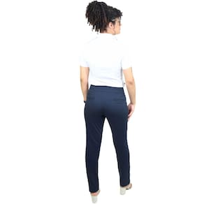 A CALÇA SOCIAL feminina tipo Cigarrete com bolsos, é produzida em tecido Milano Plus, da Doptex, a composição do tecido é de 74% Poliéster, 22% Viscose e 4% Elastano.