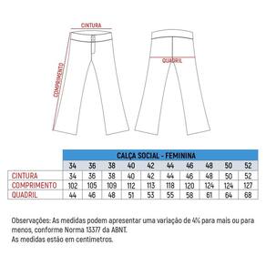 Calça Social Feminina é confeccionada em Dublin Fit, tecido composto de 95% Poliéster e 5% Elástano. Melhor ajuste ao corpo,