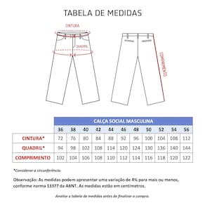 A CALÇA SOCIAL masculina é produzida em OXFORD. Tem a qualidade necessária para ser usada e lavada diariamente. Prevendo esse desgaste é fabricada com tecido de boa qualidade. Tem boa durabilidade e praticidade por ter composição 100% poliéster. Ideal para quem trabalha no ambiente corporativo. Fácil de lavar, passar e secagem rápida. Baixo Grau de Amarrotamento. Possui dois bolsos tipo faca nas laterais frontais e dois bolsos embutidos na parte posterior. Com passante para cinto. Cós anatômico de 4 cm. Costurado com máquinas eletrônicas. Destaca-se como a melhor proposta em relação ao custo-benefício. Veja seu tamanho ideal na tabela de medidas. Referência: 093AD8