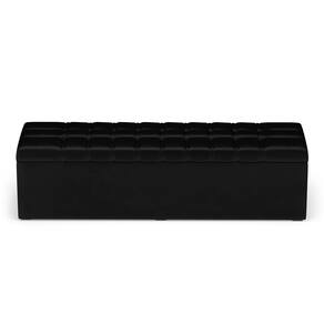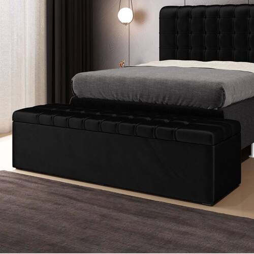 Características do Produto Madeira de eucalipto proveniente de reflorestamento Fixação com grampos galvanizados Espuma Poliuretano D20 Revestimento: Veludo Cor: Preto Tamanho: Queen para cama box de 158 cm Possui pés: Sim Tipo de pés: 4 Sapatas Possui baú interno Embalagem: Plástico bolha, papelão ondulado, malha, plástico Garantia de 3 meses contra defeitos de fábrica. Ean: 7792349715044