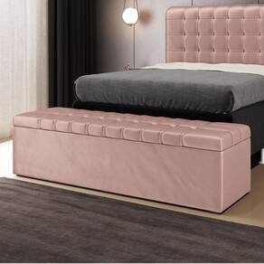 Características do Produto Madeira de eucalipto proveniente de reflorestamento Fixação com grampos galvanizados Espuma Poliuretano D20 Revestimento: Veludo Cor: Rosê Claro Tamanho: Queen para cama box de 158 cm Possui pés: Sim Tipo de pés: 4 Sapatas Possui baú interno Embalagem: Plástico bolha, papelão ondulado, malha, plástico Garantia de 3 meses contra defeitos de fábrica. Ean: 7792349754562