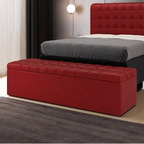 Características do Produto Madeira de eucalipto proveniente de reflorestamento Fixação com grampos galvanizados Espuma Poliuretano D20 Revestimento: Veludo Cor: Vermelho Tamanho: Queen para cama box de 158 cm Possui pés: Sim Tipo de pés: 4 Sapatas Possui baú interno Embalagem: Plástico bolha, papelão ondulado, malha, plástico Garantia de 3 meses contra defeitos de fábrica. Ean: 7792349764530