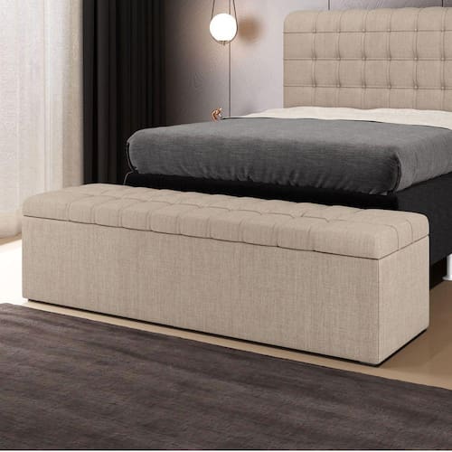 Características do Produto Madeira de eucalipto proveniente de reflorestamento Fixação com grampos galvanizados Espuma Poliuretano D20 Revestimento: Linho Cor: Bege Tamanho: Queen para cama box de 158 cm Possui pés: Sim Tipo de pés: 4 Sapatas Possui baú interno Embalagem: Plástico bolha, papelão ondulado, malha, plástico Garantia de 3 meses contra defeitos de fábrica. Ean: 7798945810596