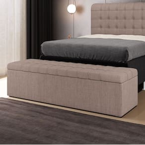 *Características do Produto* Madeira de eucalipto proveniente de reflorestamento. Fixação com grampos galvanizados. Espuma Poliuretano D20. Produto Costurado. Revestimento: Linho Possui pés: Sim, 4 sapatas. Com baú interno espaçoso. Embalagem: plástico bolha, papelão ondulado, malha, plástico Garantia de 3 meses contra defeitos de fábrica.