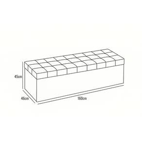 *Características do Produto* Madeira de eucalipto proveniente de reflorestamento. Fixação com grampos galvanizados. Espuma Poliuretano D20. Produto Costurado. Revestimento: Veludo Possui pés: Sim, 4 sapatas. Com baú interno espaçoso. Embalagem: plástico bolha, papelão ondulado, malha, plástico Garantia de 3 meses contra defeitos de fábrica.