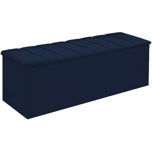 Calçadeira Baú Cancun Para Cama Box King 195 cm Suede Azul Marinho - LM DECOR